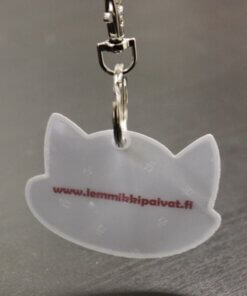 Etupuolella Lemmikkihoitola Kissanpäivien logo ja takapuolella nettisivun osoite www.lemmikkipaivat.fi.